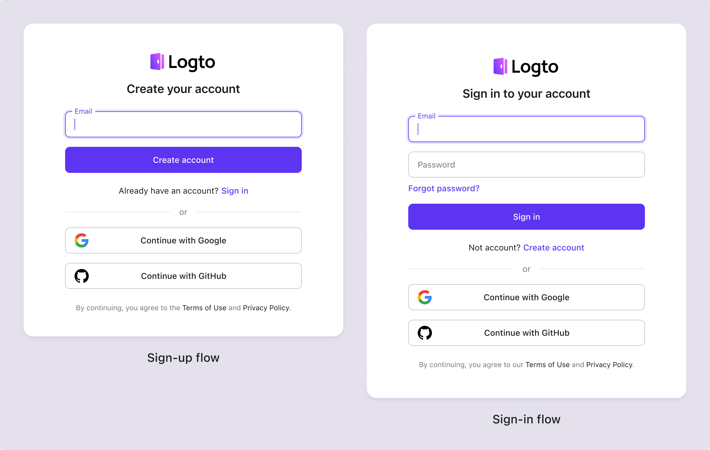 Logto bietet mehrere vorgefertigte Flows, um die Benutzererfahrung bei der Zustimmung zu den Bedingungen basierend auf deinen unterschiedlichen Compliance-Anforderungen zu handhaben: